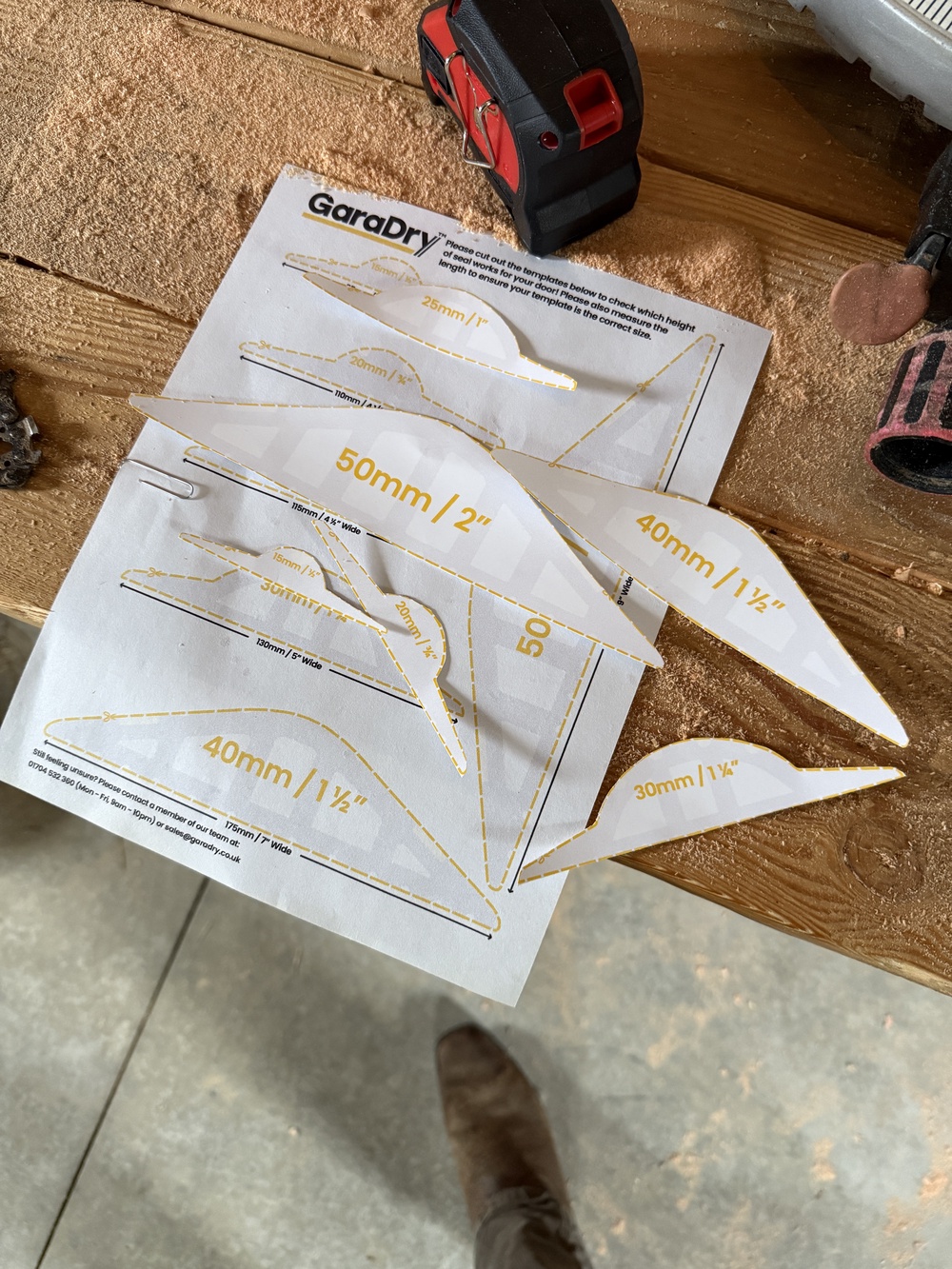 You can print off the cut sheet and use it to test different heights of threshold seal against the gap under your garage door.
